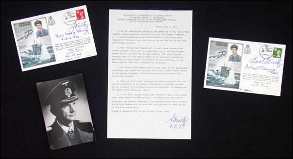 Four signed Dönitz pieces, including a souvenir typescript of the historic Instrument of Surrender