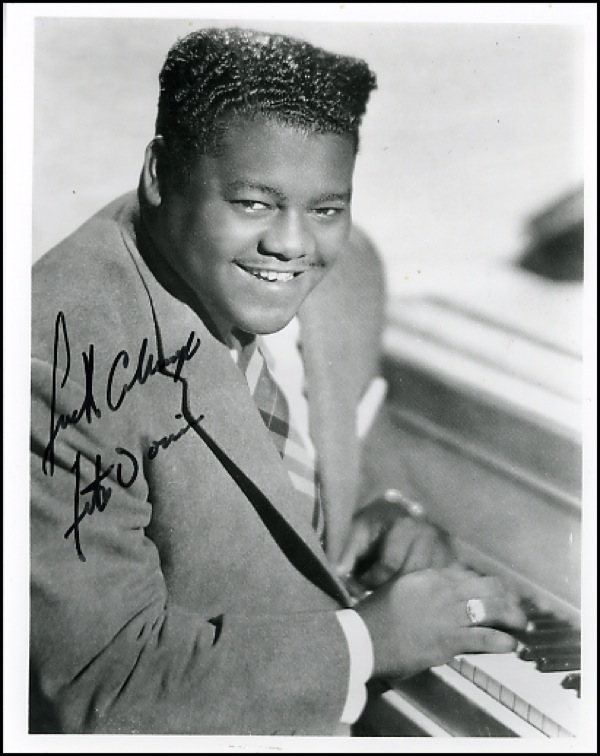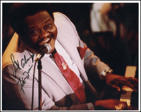 Lot of three photos, two 8 x 10 (one color) and one color 10 x 8, each signed in black felt tip, “Luck always, Fats Domino.” In fine condition. R&R COA.
