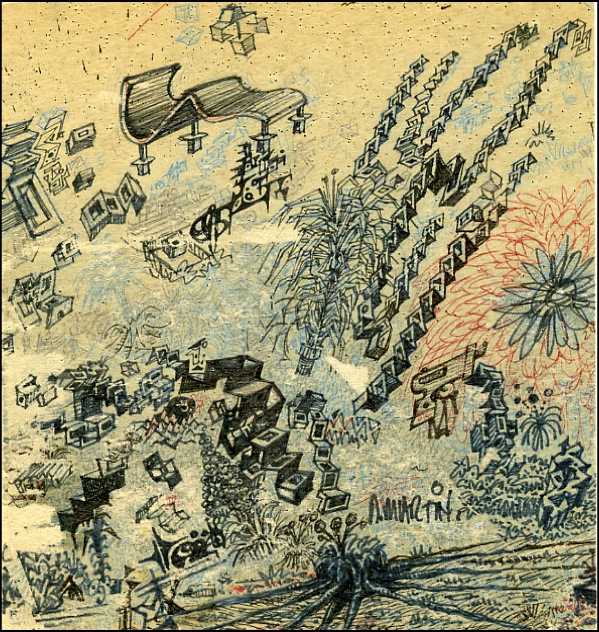 Preeminent American satirical cartoonist, renowned for his work at Mad Magazine. Original signed ink sketches on an off-white 8.5 x 9 hard artist board with rare hand drawings on both sides, each side signed “D. Martin.” Classic Martin imagery, from the John Francis Putnam Collection (Mad’s art director). Images on the board include various geometrical patterns, a spider, flowers, an undulating chair, potted plants, a window, a small face, bed posts, very reminiscent of Mad’s implosive/explosive sensibility. In fine condition, with a “John Francis Putnam” label affixed to a blank area of one side, couple of areas of paper loss. R&R COA.