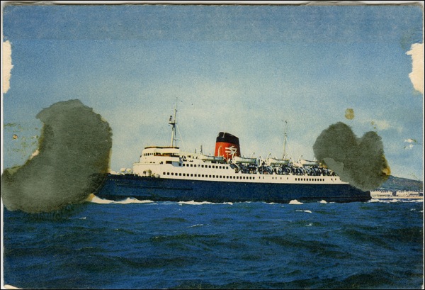Color vintage 5.75 x 4 postcard photo of the British rail carrier, the S. S. Maid of Kent, signed on the correspondence side in blue felt tip, “John Lennon,” and “George Harrison.” Some scattered light toning and soiling, two small tape remnants to vertical edges and mounting remnants to image side, otherwise fine condition. COA Roger Epperson/PSA/DNA and R&R COA.
