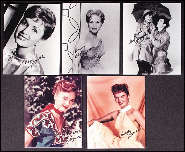 Lot of five different glossy 8 x 10 photos, including two color, each signed in black felt tip by Reynolds. In fine condition. R&R COA.