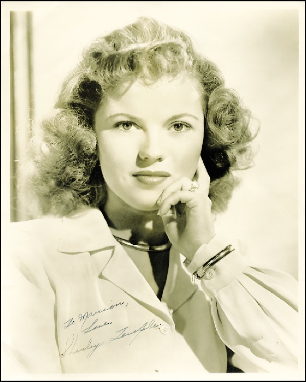 Lot of two sepia signed 8 x 10 photos includes: a vintage portrait of Shirley Temple, signed and inscribed “To Marion, Love, Shirley Temple” in fountain pen; and a portrait of John Agar, signed in green felt tip. In fine condition. Temple and Agar were married from 1945 to 1950 and had one child. R&R COA.
