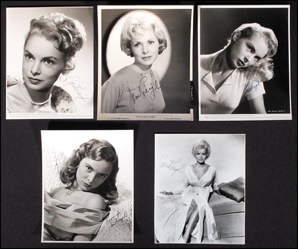 Lot of five different glossy 8 x 10 photos of the actress, representing different stages in her career, each signed in black or blue felt tip. In overall fine condition, with neatly trimmed edges to three, edge toning, occasional corner creases. Nice lot. R&R COA.