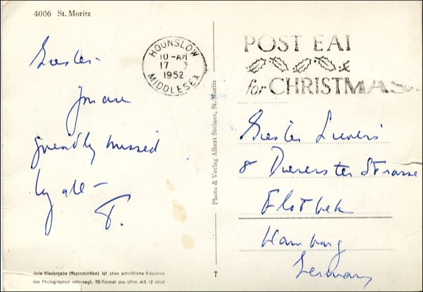 ALS signed “J.,” one page on the correspondence side of a 5.75 x 4 postcard, November or December 1952. Kennedy, who had just won his first senatorial race, pens a note to Gisela Sievers. In full: “Gisela—You are greatly missed by all.” Sievers, a translator that Kennedy had met while in Europe (the postcard is postmarked Hounslow, Middlesex, England), was the friend of Torbert MacDonald, Kennedy’s Harvard roommate—and, reportedly, an alternate object of affection for JFK at a time when he had already begun to see Jaqueline Bouvier. At the time of writing, Kennedy had just triumphed in his first—and grueling—Senate campaign, and was likely in Europe for a well-deserved vacation. Accompanied by a certificate of authenticity from Profiles in History. In very good condition, with a touch of edge wear and some scattered mild soiling, a few faint spots (away from writing), and a heavy corner crease away from all writing. COA John Reznikoff/PSA/DNA and R&R COA.