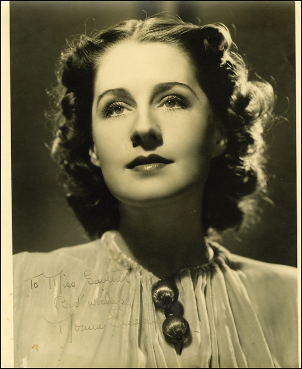 Lovely vintage matte-finish 10 x 12 Clarence Sinclair Bull portrait of the dewy-eyed actress, signed and inscribed in fountain pen “To Miss Gunther, best wishes, Norma Shearer.” In very good condition, with timmed edges, corner bends, a few small areas of trivial soiling in the lower left corner. R&R COA.