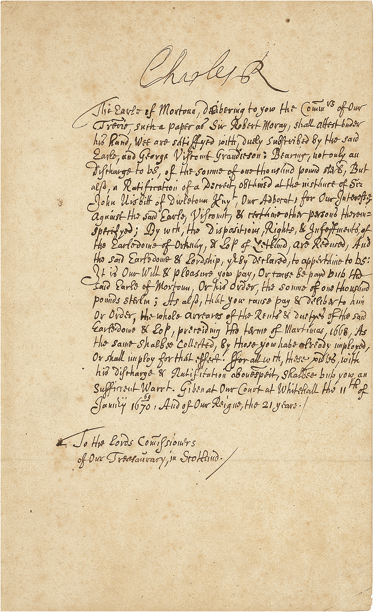 The son also rises: Document signed by Charles II