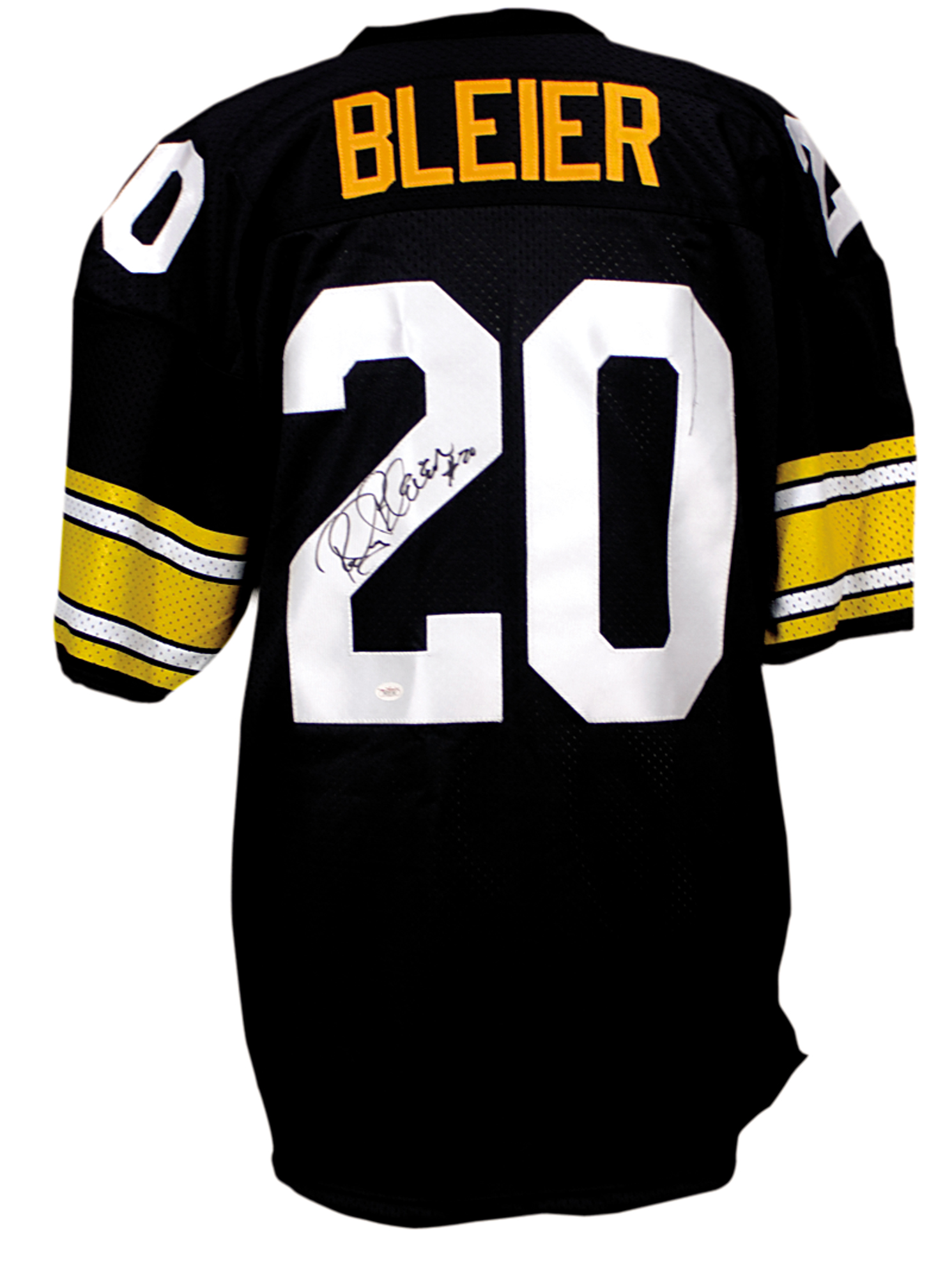 Replica Pittsburgh Steelers football jersey, with sewn on letters and numbers, signed in felt tip on the number on the back. In very fine condition. LOA Steve Grad/PSA/DNA, Spence certificate and R&R COA.