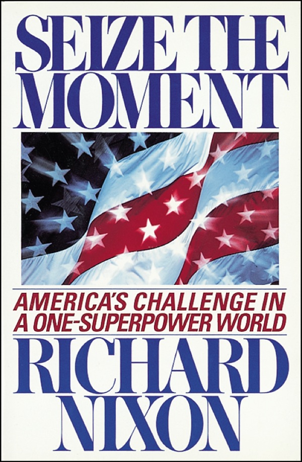 Signed book: Seize the Moment. NY: Simon & Schuster, 1992. Hardcover with dustjacket, 6.5 x 9.5, 322 pages. Signed in blue ink on a Nixon Library bookplate affixed to the front free end page. Light crease to front free end page (not affecting bookplate), otherwise very fine condition. LOA John Reznikoff/PSA/DNA and R&R COA.