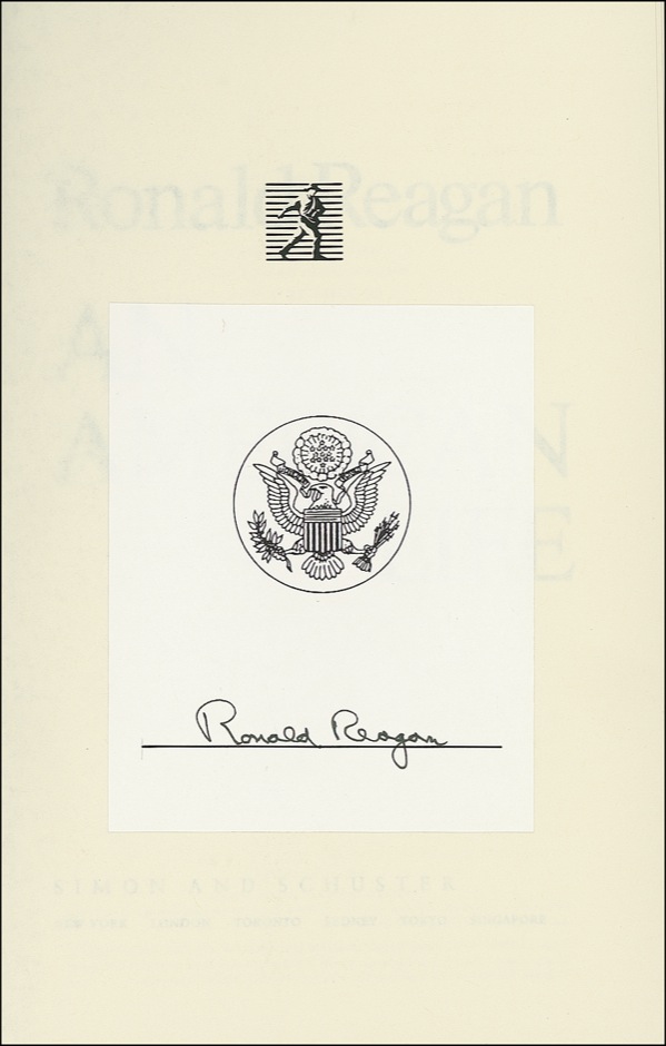 Signed book: An American Life. NY: Simon & Schuster, 1990. Hardcover with dustjacket, 6.5 x 9.5, 748 pages. Signed in black ink on a printed bookplate affixed to a front blank. In very fine condition. R&R COA.