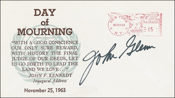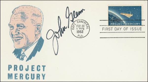 Five FDCs with space-related and patriotic cachets, including three “flocked” examples, each signed in ink or felt tip. A few scattered spots of mild soiling, otherwise fine condition. COA Scott Cornish and R&R COA.
