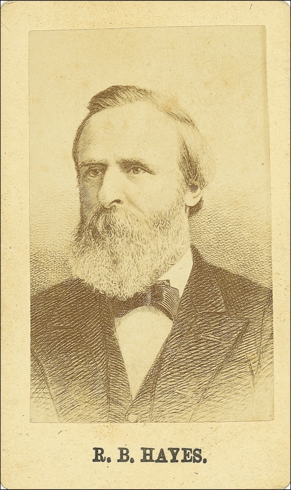 Original 2.5 x 4 CDV photo of a portrait engraving of Hayes, signed in ink on the reverse, “Rutherford B. Hayes, Fremont, O., 20 Mch. 1883.” Pencil notations to reverse and the subtlest suggestion of soiling, otherwise fine, bright, outstandingly preserved condition. An exceptional example! LOA John Reznikoff/PSA/DNA and R&R COA.