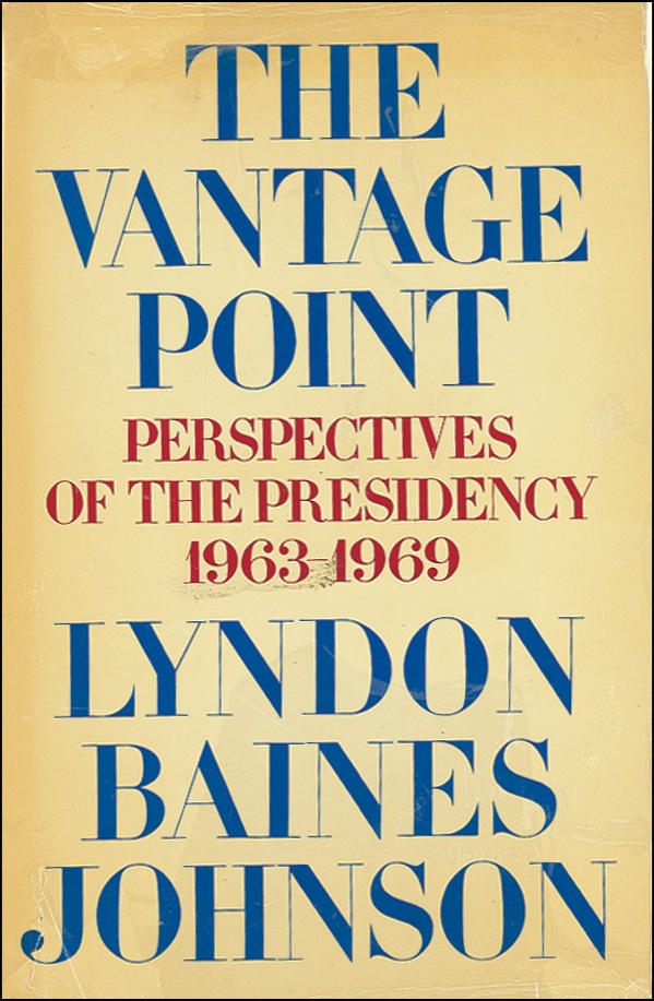 Signed book: The Vantage Point: Perspectives of the Presidency, 1963–1969. First edition. NY: Holt, Rinehart & Winston, 1971. Hardcover with dustjacket, 6.5 x 9.5, 636 pages. Boldly signed in black ink on a gilt-embossed bookplate affixed to the half-title page. In fine condition, with light toning and wear to jacket and very subtle brush to final letter of signature. LOA John Reznikoff/PSA/DNA and R&R COA.