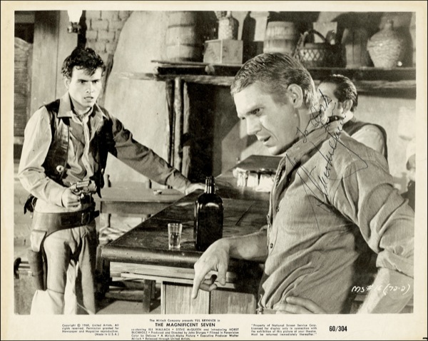 McQueen signs a photo from the classic, The Magnificent Seven