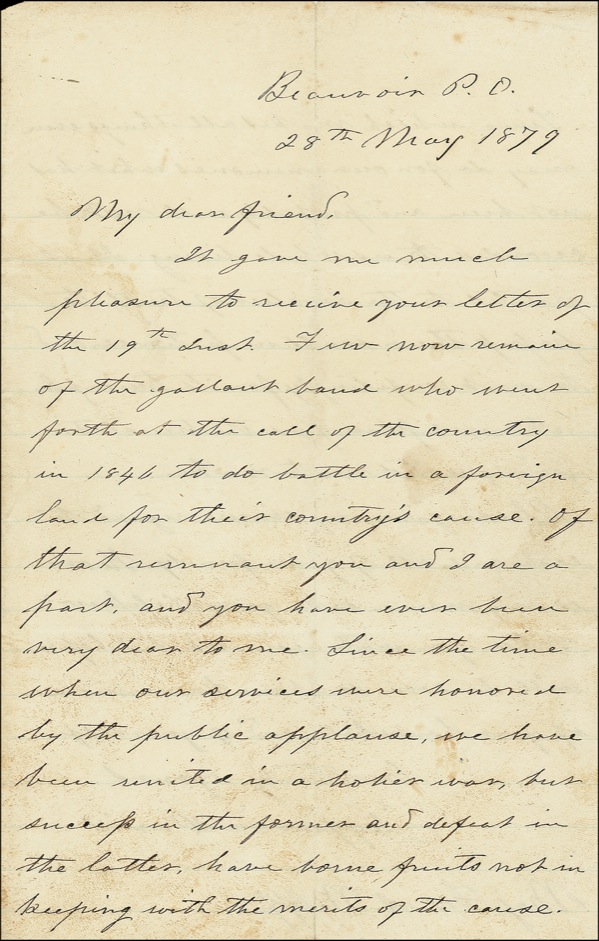 Reflecting on the Mexican and Civil Wars: “Since the time … we have been united in a holier war, but success in the former and defeat in the latter have borne fruits not in keeping with the merits of the cause”