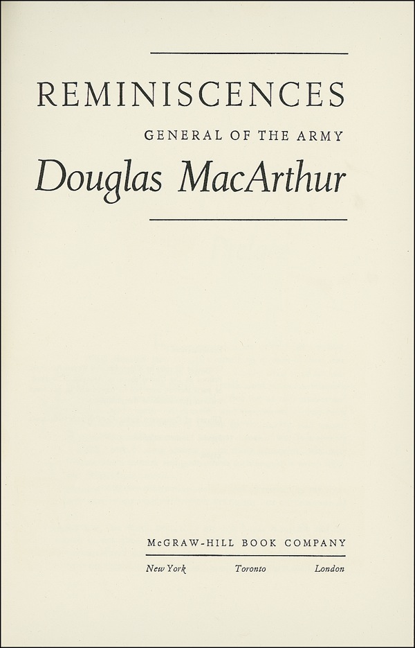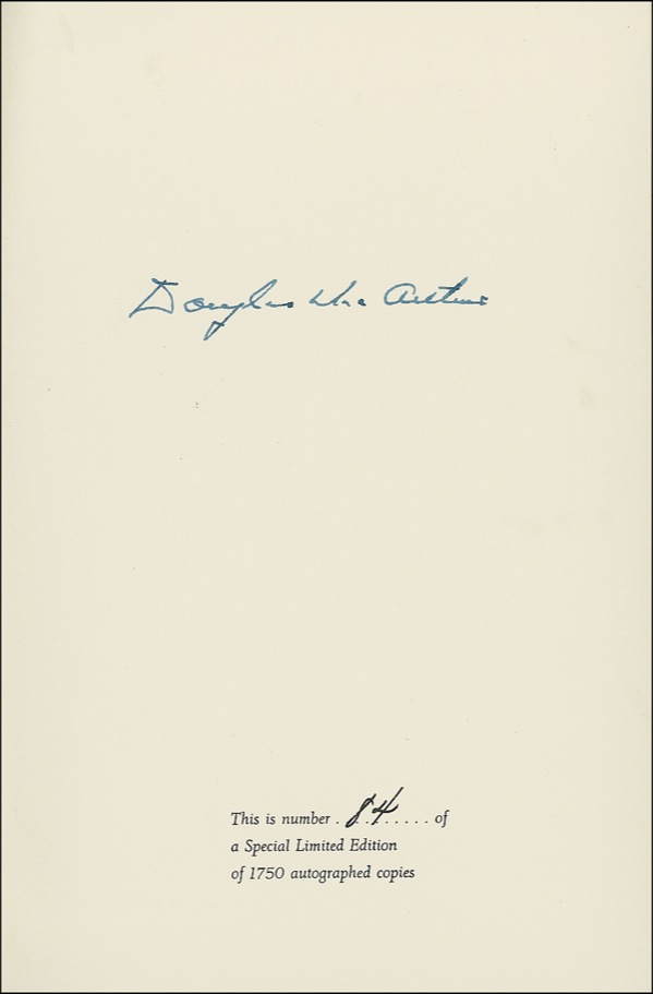 Signed book: Reminiscences. Limited edition of 1750 signed copies (this copy No. 84). NY: McGraw Hill, 1964. Hardcover, 6.5 x 9.5, 438 pages. Signed in fountain pen on the limitation page. Housed in a custom-made cloth slipcase. In very fine, fresh condition. R&R COA.