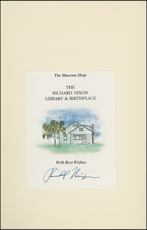 Signed book: Six Crises. Book club edition. NY: Doubleday & Co., Inc., 1962. Hardcover with dustjacket, 6.5 x 9.5, 460 pages. Signed in blue ink on a Nixon Library and Birthplace bookplate affixed to the front free end page. In fine condition, with mild edge wear and rubbing to jacket. LOA John Reznikoff/PSA/DNA and R&R COA.