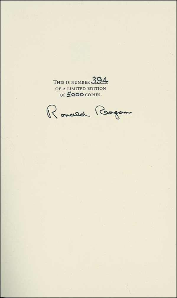 Signed book: Speaking My Mind: Selected Speeches. Limited edition of 5000 copies (this copy No. 394). NY: Simon & Schuster, 1989. Leather-bound hardcover, 6.5 x 9.5, 432 pages. Signed in black ink on the limitation page. In very fine condition. R&R COA.