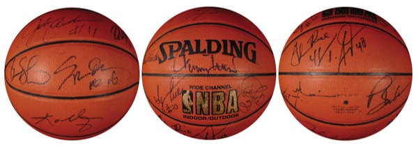 Official Spalding NBA basketball signed on the side panels in black felt tip by fourteen members of the 2000 World Champion Los Angeles Lakers. Signers include: Phil Jackson, Jerry West, Kobe Bryant, Shaquille O’Neal, Glenn Rice, Brian Shaw, Tex Winter, and Ty Lue. In fine condition. Auction LOA Steve Grad/PSA/DNA and R&R COA.