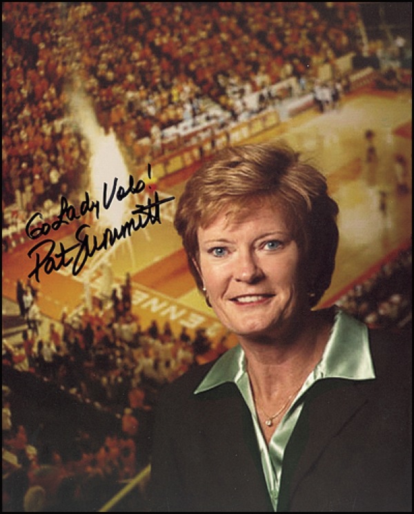 Three different color photos of the Lady Volunteers’ coach, two 8 x 10 and one 10 x 8, each signed in black felt tip or silver ink. In very fine condition. R&R COA.