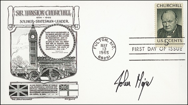 Two FDCs with cachets honoring Winston Churchil, 6.5 x 3.5, one each signed in ink by Margaret Thatcher and John Major. In very fine condition. R&R COA.