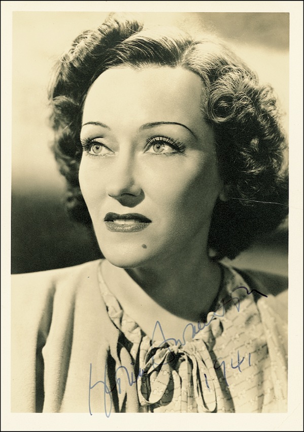 Vintage matte-finish 5 x 7 photo, signed in fountain pen, “Gloria Swanson, 1941.” Tiny marginal corner bend, otherwise fine, fresh condition. R&R COA.