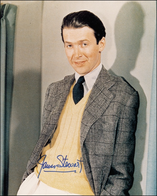 Two signed 8 x 10 photos, one glossy and one color satin-finish, each signed in blue felt tip, “James Stewart.” In fine condition. R&R COA.