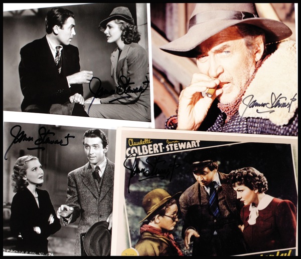 Four signed glossy photos spanning Stewart’s career, three 8 x 10 and one 10 x 8, including two color, each signed in black felt tip, “James Stewart.” In fine condition. R&R COA.