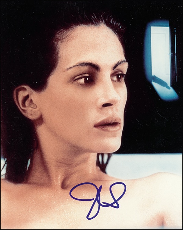 Three color glossy and satin-finish 8 x 10 photos, each signed in-person in blue felt tip by the respective lovely actress pictured: Julia Roberts, Sharon Stone, and Kim Basinger. Obtained in-person by New York City collector Blake Levine. In fine condition, with light contrast to Basinger’s signature. R&R COA.