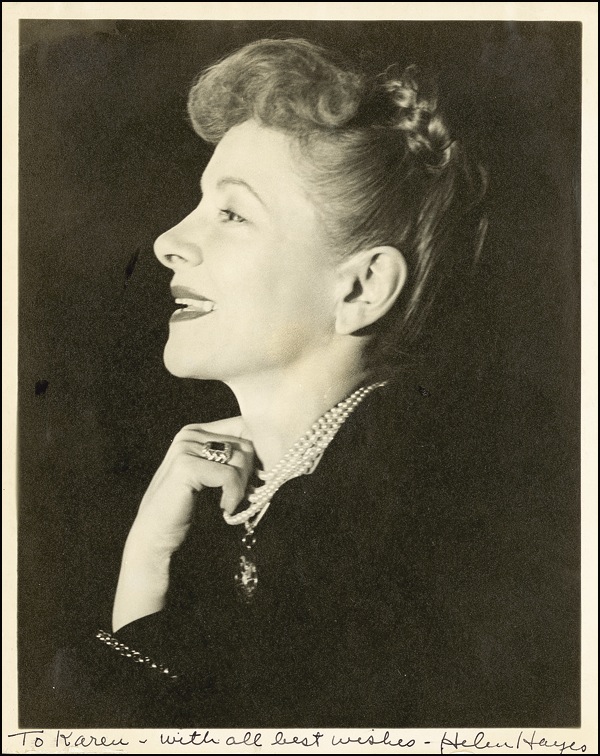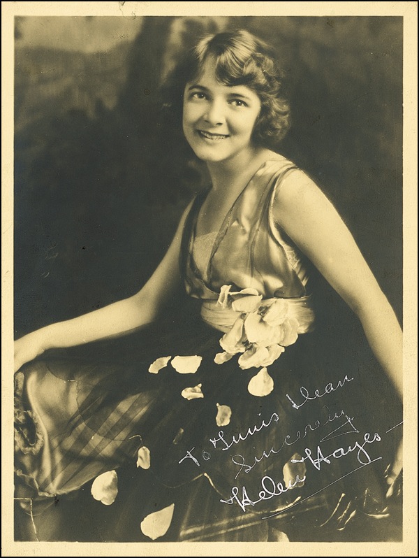 Two vintage matte-finish photos, one (8 x 10) signed and inscribed in fountain pen, “To Karen with all best wishes, Helen Hayes,” the other (6.25 x 8.5) signed and inscribed in white ink, “To Tunis Dean, Sincerely, Helen Hayes.” A touch of mild scattered soiling and a few minor dings and surface marks, otherwise fine condition. R&R COA.