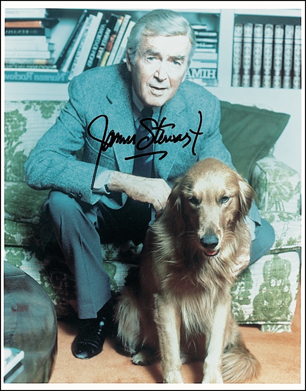 Three signed photos, two 8 x 10 and one 10 x 8, including two color, each signed in black felt tip, “James Stewart.” In fine condition. R&R COA.