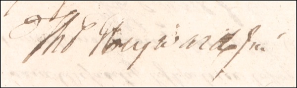 Signer of the Declaration of Independence from South Carolina (1746–1809). DS, signed “Tho. Heyward, Jr.,” one page, 7.75 x 12.25, May 31, 1788. A legal document ordering Samuel Stone to appear to answer a complaint related to non-payment of a previous judgment. Matted and framed with a portrait and engraved plaque to an overall size of 19.5 x 19.25. A few small blots to signature, horizontal folds (one with partial separation touching a few words of text) and light show-through from docketing to reverse, otherwise fine condition. Auction LOA John Reznikoff/PSA/DNA and R&R COA.