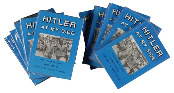 Hitler’s personal pilot (born 1897). During the final days of World War II, Baur tried to convince Hitler to let him be flown out of Berlin; Hitler refused and thanked Baur for his long, faithful service. Baur then attempted to flee Berlin, and lost a leg in the attempt. A prisoner of the Russians until 1955, he died in 1993. Ten hardcover copies of the book Hitler at My Side, each signed in ink. Still sealed and in excellent condition. R&R COA.