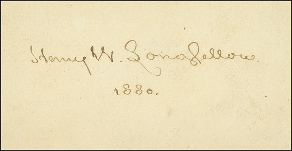 Ink signature, “Henry W. Longfellow,” on an off-white 4.25 x 2.25 slip, dated 1880. In fine condition, with a light shade of overall toning and a couple light wrinkles. R&R COA.