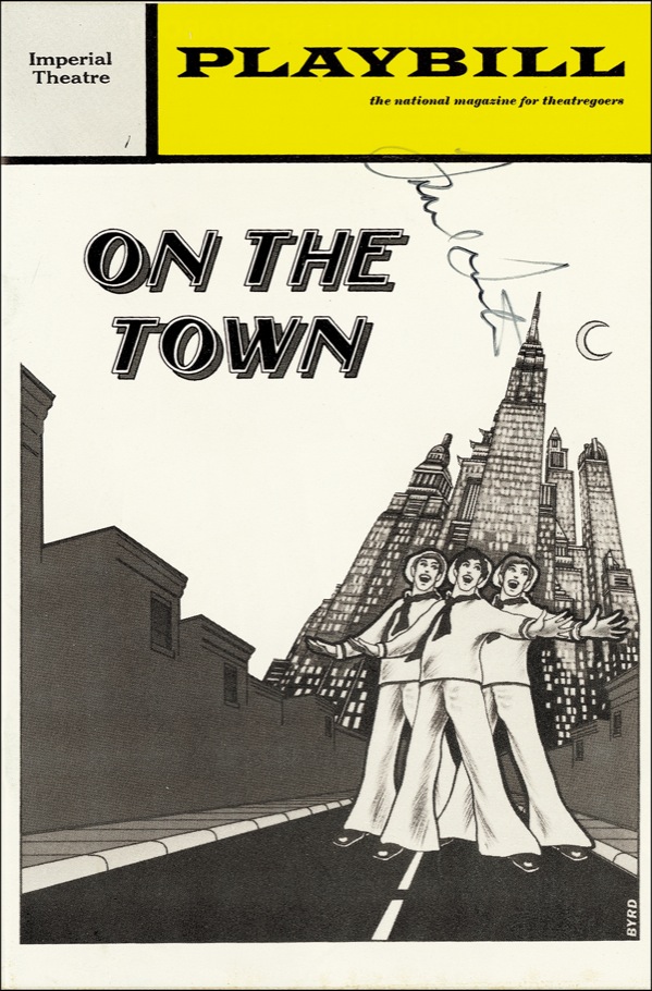 Playbill from the Imperial Theatre’s production of On The Town, signed on the cover in black felt tip by Sinatra, who, consignor states, was in the audience that evening. In fine condition, with a touch of light handling wear. PSA/DNA Auction LOA and R&R COA.