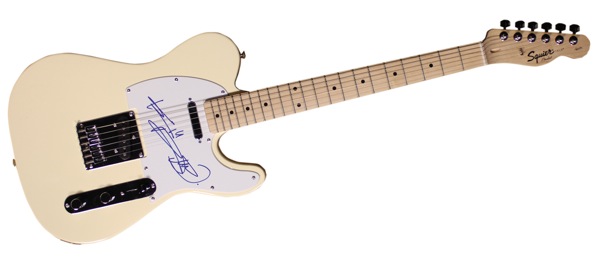 Founding member of The Rolling Stones. With songwriting partner and Stones lead vocalist Mick Jagger, he has written, recorded and published hundreds of songs. Though he has had a solo career and appears as a guest artist on the recordings of other artists, his association with the Stones has defined his musical career. Cream-colored Fender Squier Tele ‘telecaster-style’ electric guitar, nicely signed on the white pickguard in blue felt tip. In fine condition. COA Roger Epperson/REAL and R&R COA. Oversized.