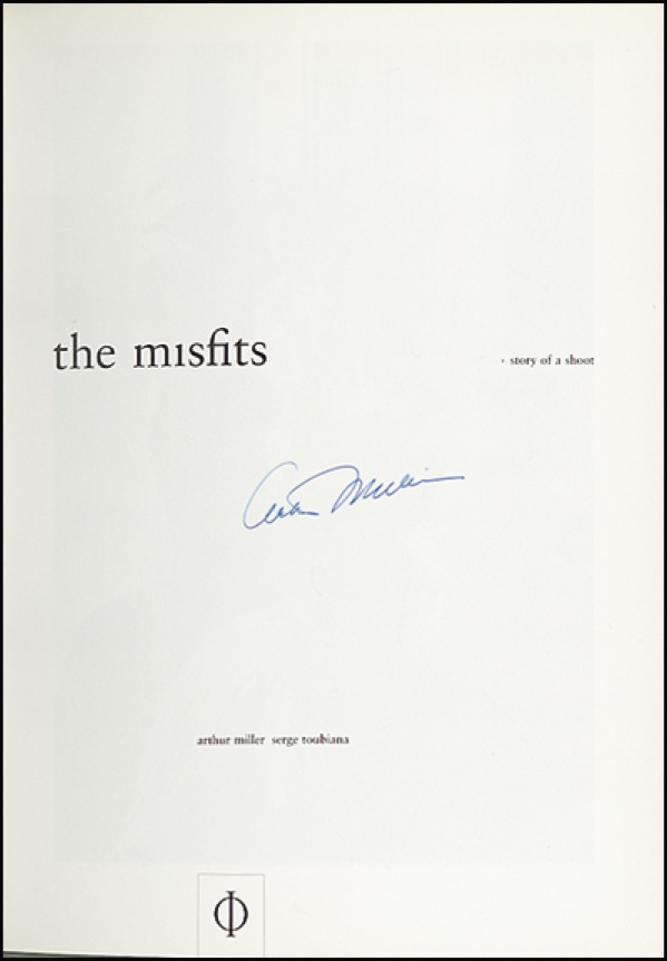 Signed book: The Misfits: Story of a Shoot. First edition. London: Phaidon, 2000. Hardcover with dustjacket, 7.5 x 10, 192 pages. Signed in blue ink on the title page. Mild rubbing to jacket, otherwise very fine condition. R&R COA.