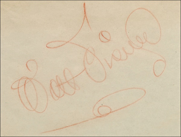 Large vintage crayon signature, “Walt Disney,” on an off-white 6 x 4.5 album page. Double matted and framed with a color portrait of a smiling Disney, to an overall size of 13.25 x 20.25. In fine condition. Nicely presented with signature measuring 5.5” long. PSA/DNA Auction LOA and R&R COA.
