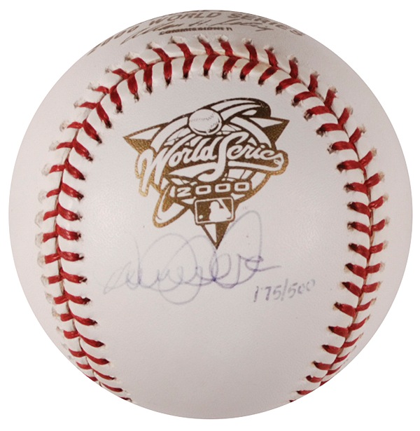 Limited edition official Rawlings 2000 World Series League baseball, 175/500, signed in ballpoint on a side panel. Accompanied by a certificate of authenticity from Steiner. In fine condition, with a Steiner hologram affixed to another side panel. Auction LOA Steve Grad/PSA/DNA and R&R COA.