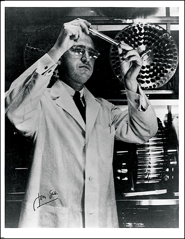 Two items: calligraphic quotation on an off-white 8 x 5 card, written in another hand and signed by Salk in black felt tip; and a glossy 8 x 10 photo, signed in black felt tip. In very fine condition. R&R COA.