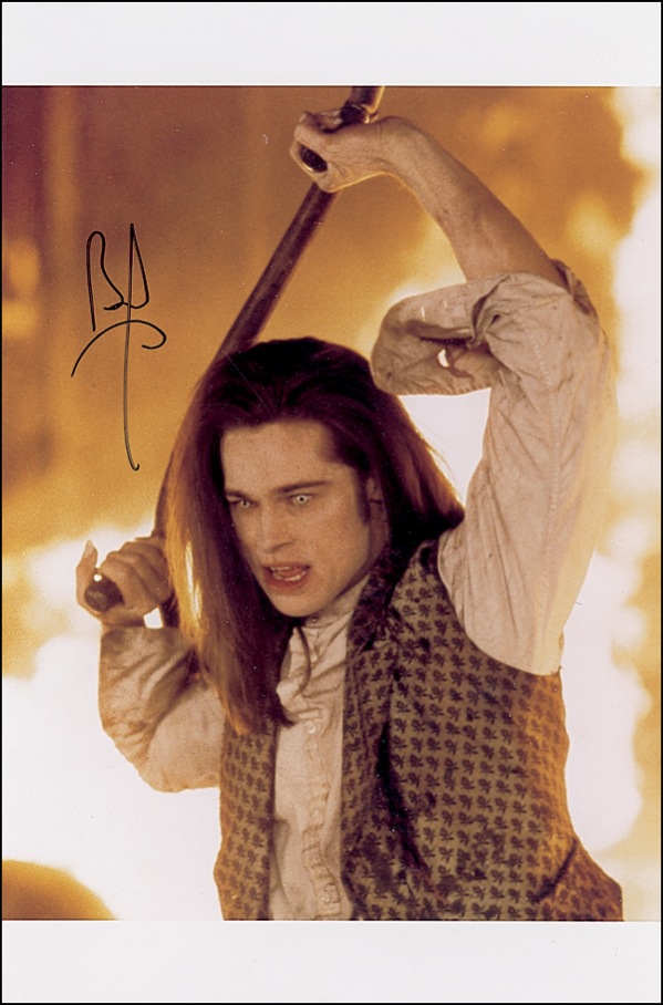 Two color 8 x 12 photos from Interview With the Vampire, one glossy and one satin-finish, signed in-person blue felt tip by Tom Cruise and in black felt tip by Brad Pitt respectively. In very fine condition. R&R COA.