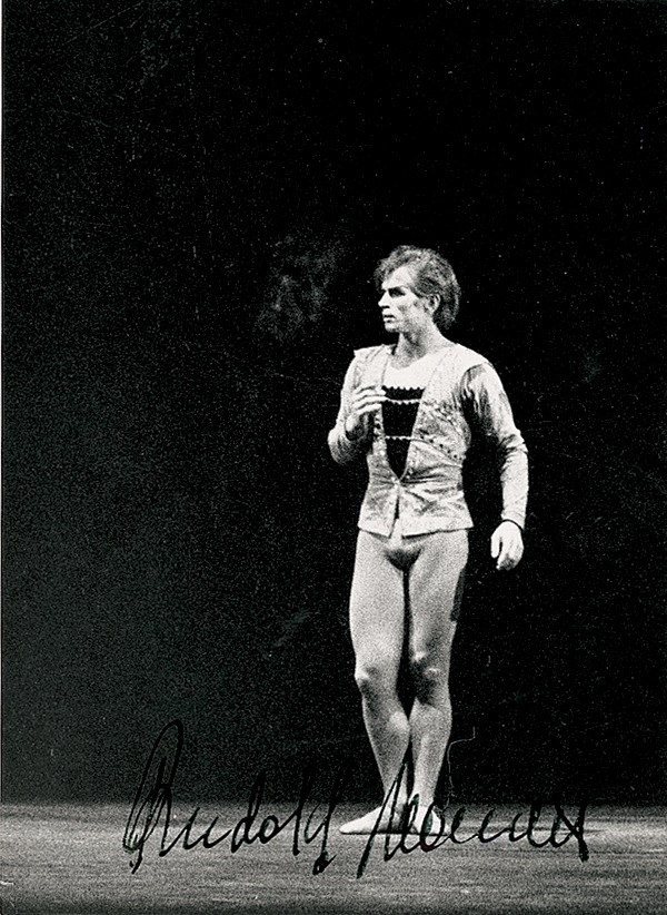 Russian dancer (1938–1993) who was one of the most popular ballet artists of the twentieth century. Glossy 5 x 7 photo of Nureyev on stage, signed in black ink. In fine condition, with some scattered light surface marks. R&R COA.
