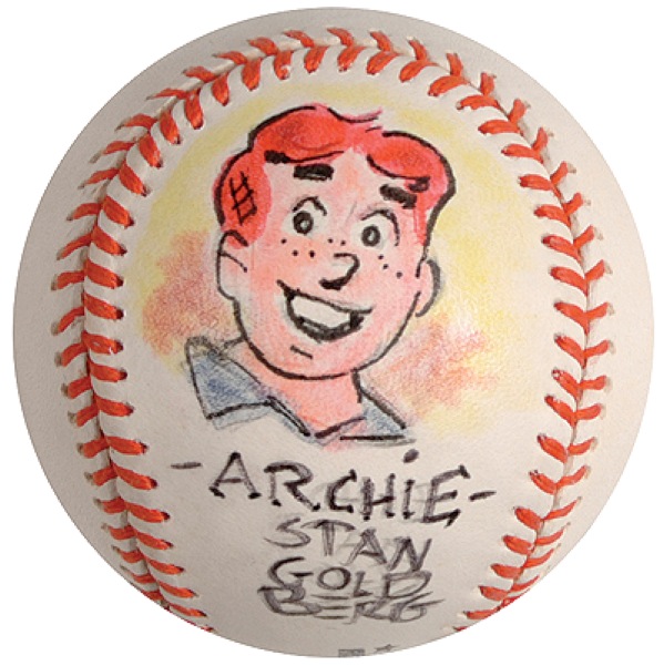 Official Rawlings American League Cal Ripken commemorative baseball signed in felt tip on a side panel, “Stan Goldberg,” with Goldberg adding a great color sketch of Archie. In very fine condition, with Goldberg going over his signature twice. R&R COA.