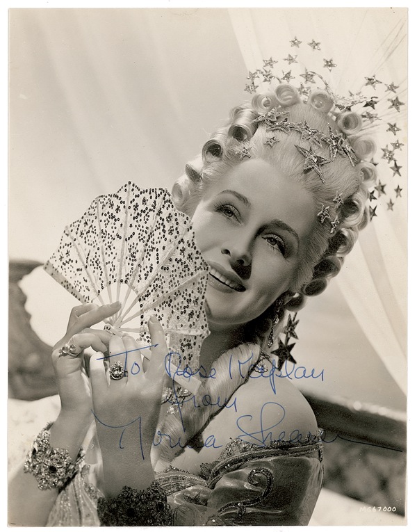 Vintage matte-finish photo of Shearer as Marie Antoinette, neatly trimmed in size to 7 x 9.25, signed and inscribed in blue ink, “To Rose Kaplan from Norma Shearer.” In fine condition. R&R COA.