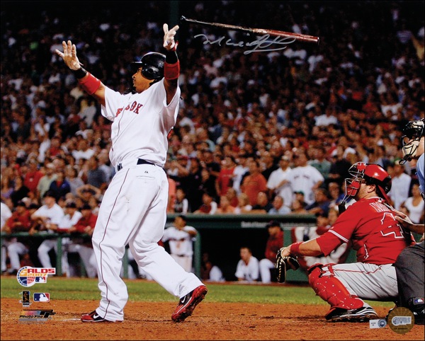 Color glossy 20 x 16 photo of Ramirez hitting a walk-off home run against the Angels in the 2007 ALDS, signed in silver ink. In very fine condition. Auction LOA Steve Grad/PSA/DNA and R&R COA.