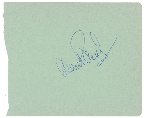 American disc jockey and promoter (1921–1965) who pioneered the broadcasting of R&B and rock and roll on the radio, resulting in an explosion of interest in these still-emerging genres in the early 1950s. His career ended in the late 1950s when it was revealed that he, in a pervasive practice of the era, had accepted bribes from record labels in exchange for airplay. The resulting “payola” scandal resulted in legislation that made such actions illegal. Freed was one of the original inductees into the Rock and Roll Hall of Fame in 1986. Uncommon vintage ballpoint signature, “Alan Freed,” on a light green 5.5 x 4.5 album page. In fine condition, with a rough left edge. R&R COA.