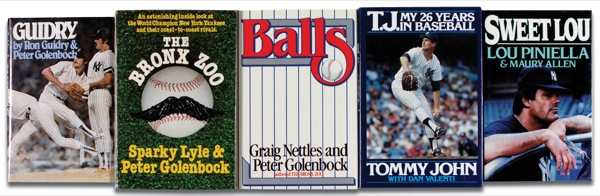 Five hardcover books: Balls, signed by Graig Nettles; The Bronx Zoo, signed by Sparky Lyle; Sweet Lou, signed and inscribed by Lou Pinella; T. J.: My 26 Years in Baseball, signed by Tommy John; and Guidry, signed and inscribed by Ron Guidry. In fine overall condition. R&R COA.