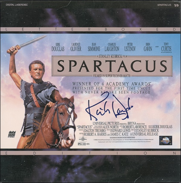 Spartacus laser disc, signed in-person on the front in black felt tip by Douglas. In fine condition, with a few light edge creases. The disc is not included. R&R COA.