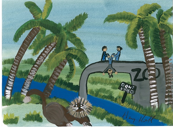 Former mobster, Lucchese crime family associate, and FBI informant whose life was immortalized in the book Wiseguy, written by crime reporter Nicholas Pileggi, and the 1990 Martin Scorsese movie Goodfellas, in which Hill was played by Ray Liotta. Original 15 x 11 watercolor and oil painting of what appears to be Hill and an associate holding a man by his legs above the lion pit at the zoo, signed in black felt tip by Hill. Accompanied by a certificate of authenticity from Hill, also signed in black felt tip, and a laserprint photo of Hill holding the painting. In fine condition. R&R COA.