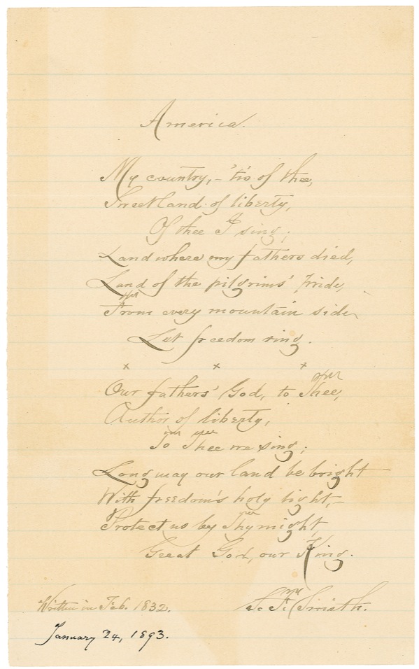 Samuel Francis Smith: SWEET LAND OF LIBERTY: Smith pens his immortal lyrics to “America”