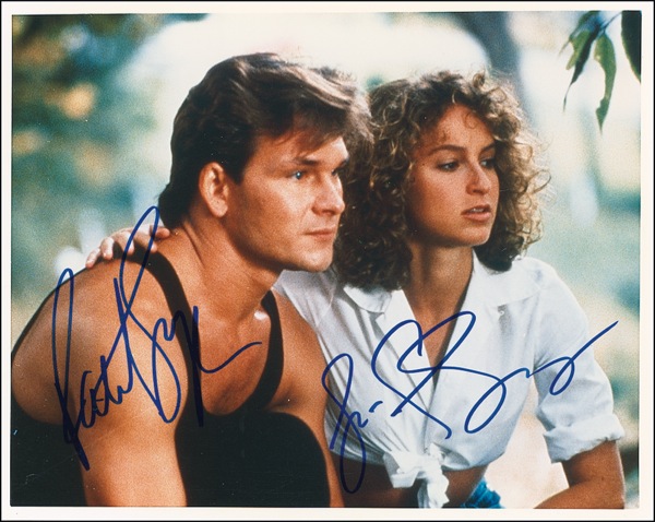 Color glossy 10 x 8 photo from the film, signed in-person in blue felt tip by Patrick Swayze and Jennifer Grey. In very fine condition. R&R COA.